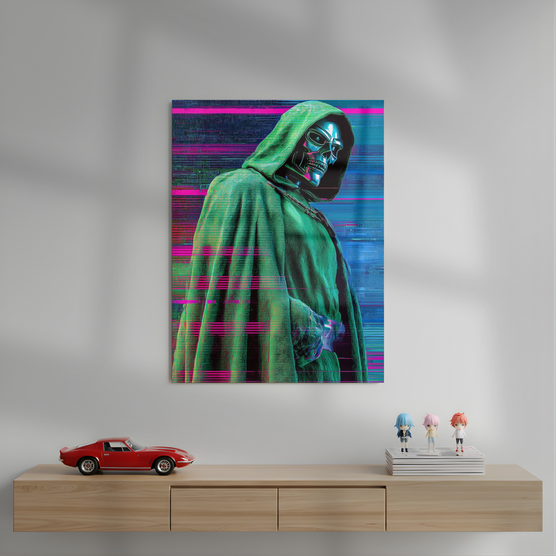 Doctor Doom Glitch Effect Metal Poster | Aesthetic Pop Art Wall Decor & Painting