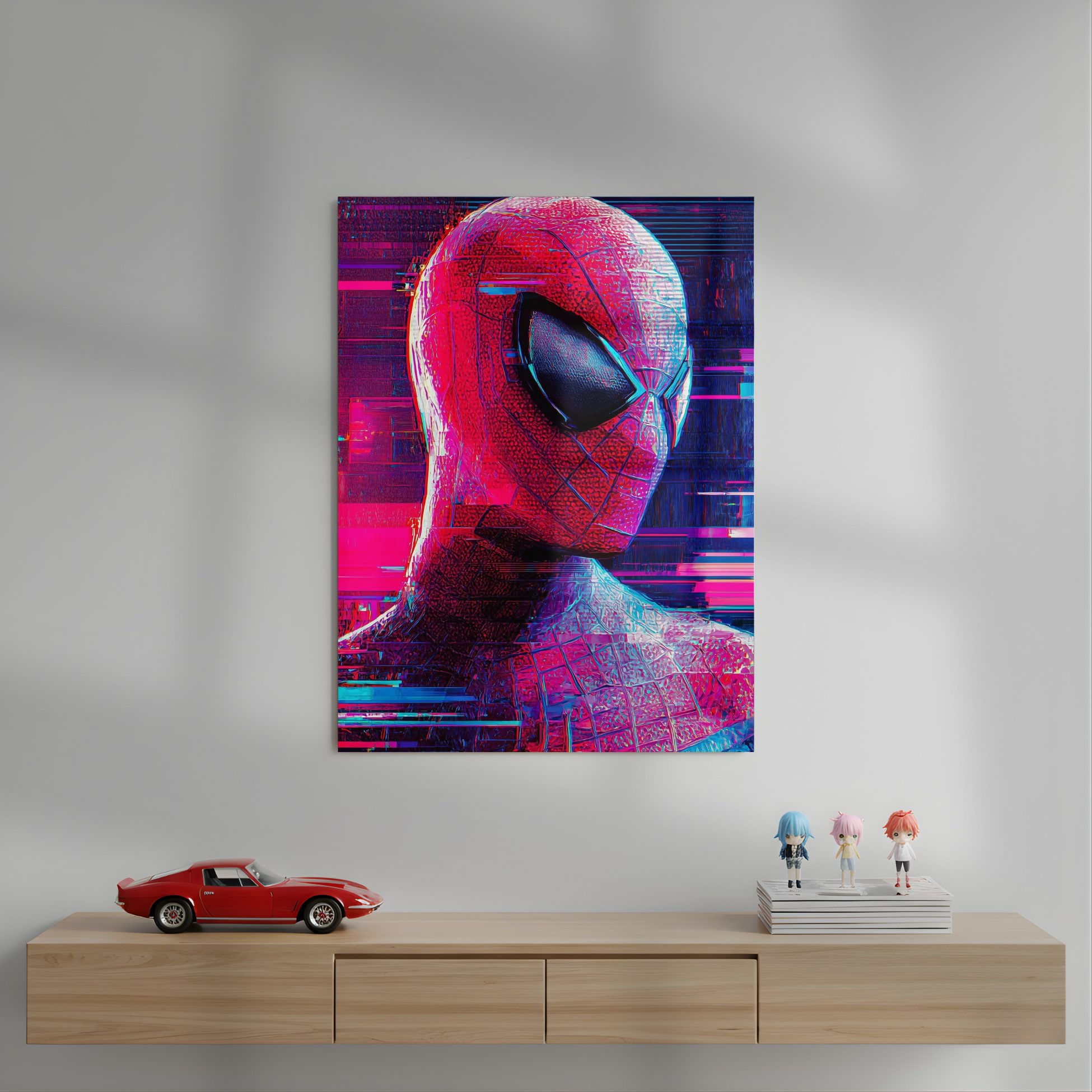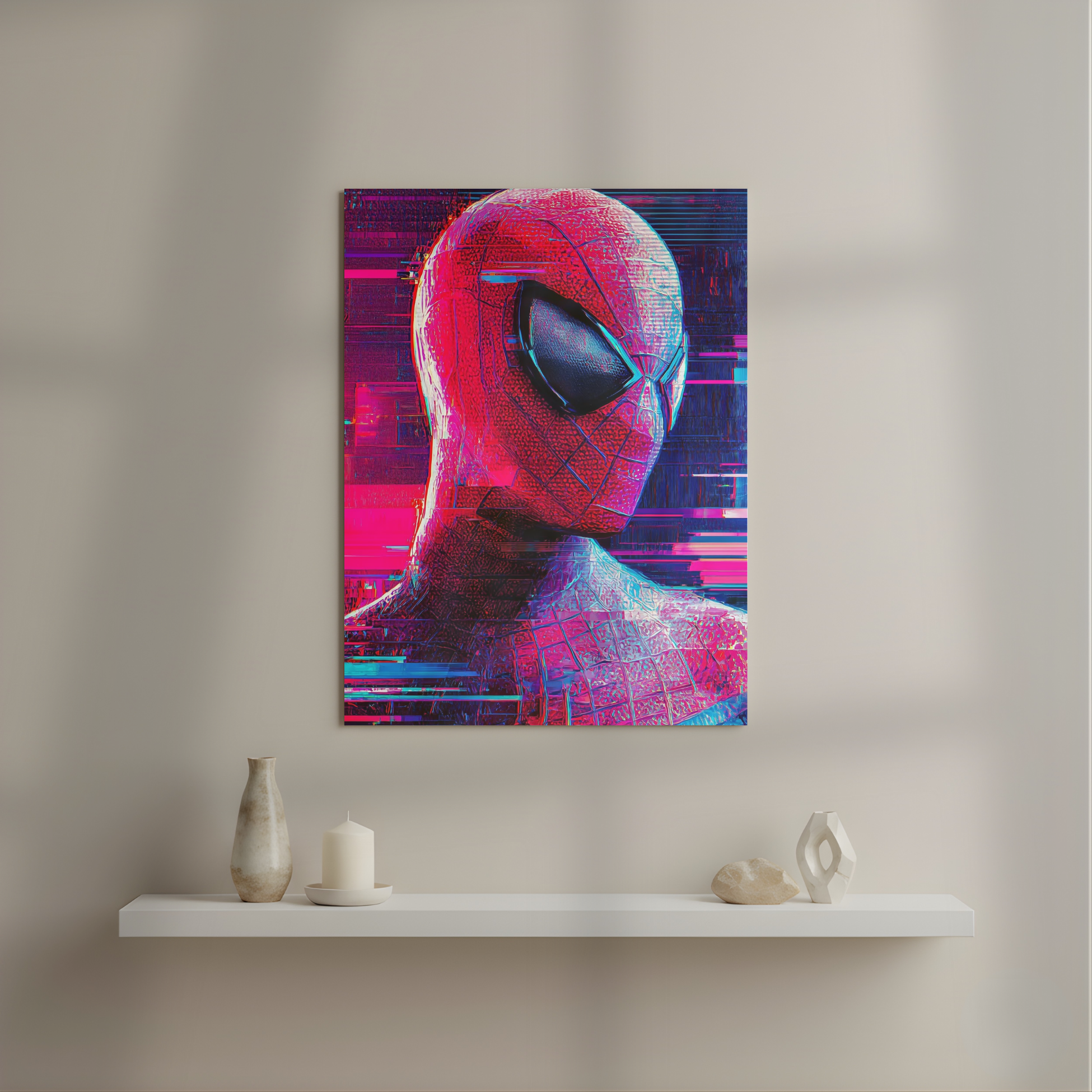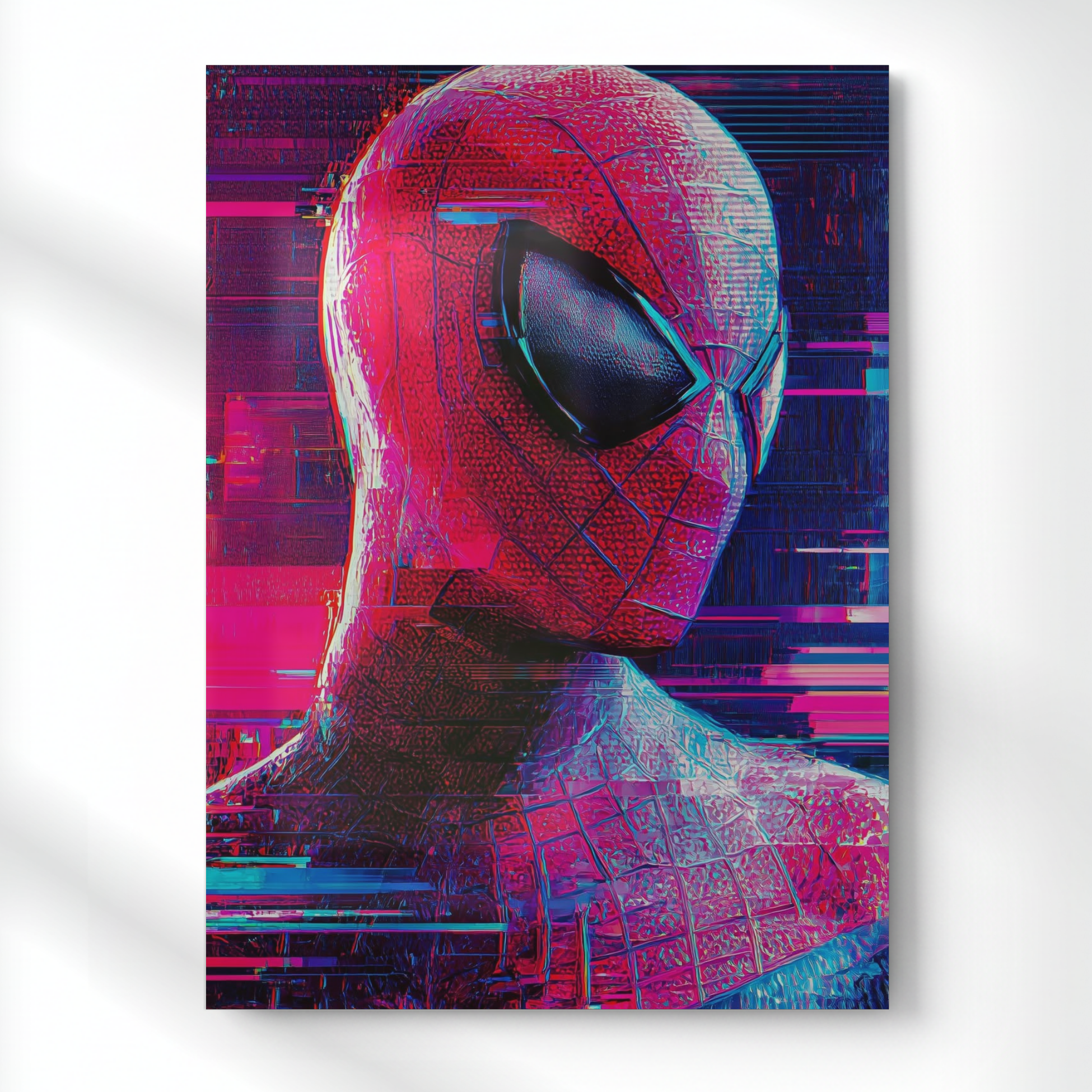 Glitched Red Spiderman Metal Poster | Aesthetic Pop Art Wall Decor & Painting