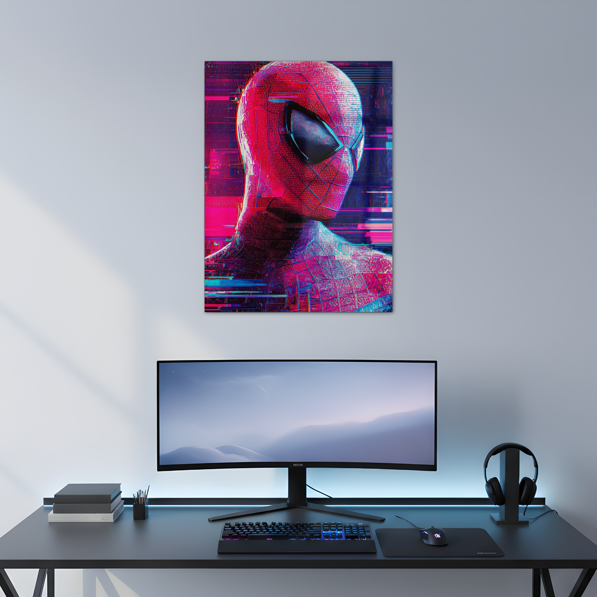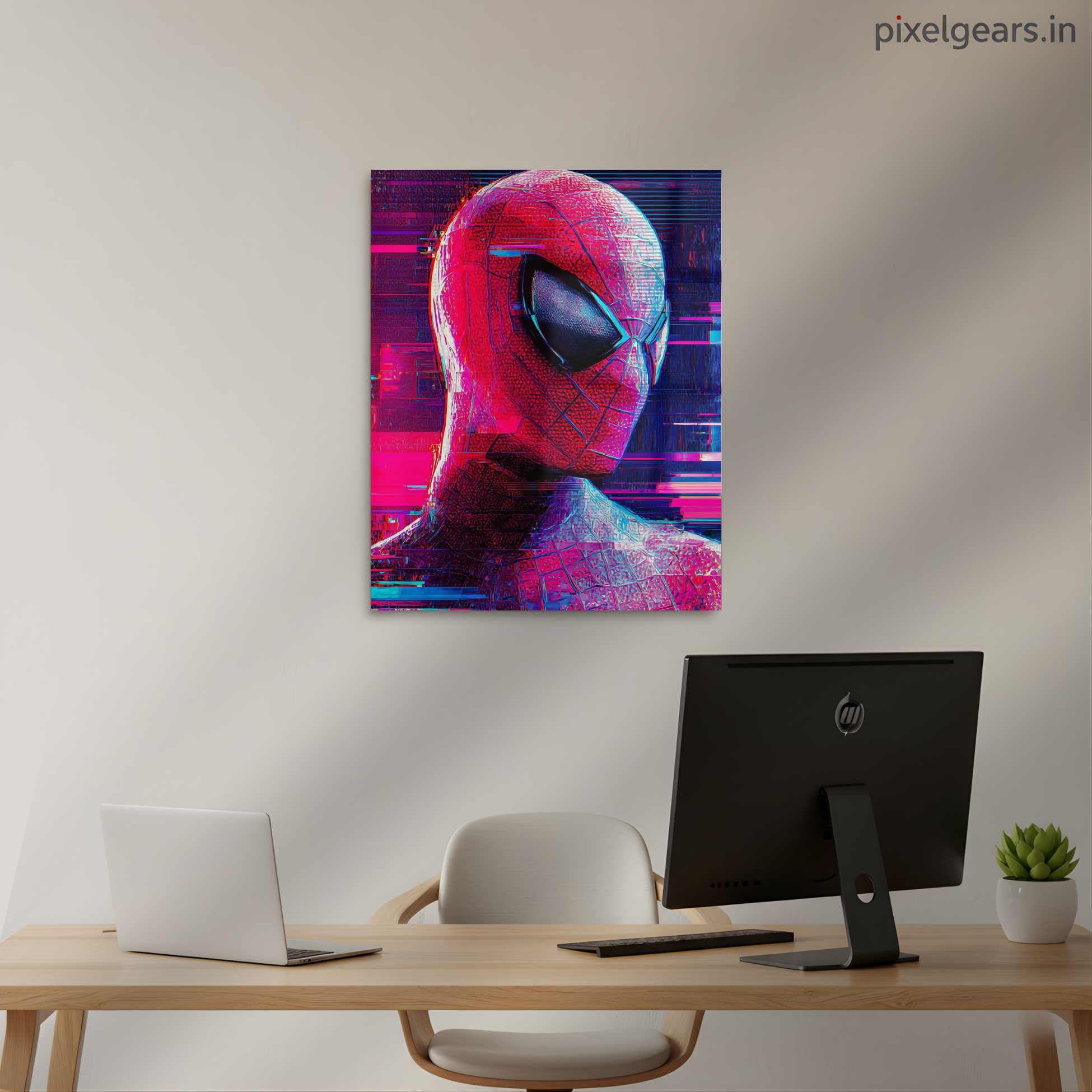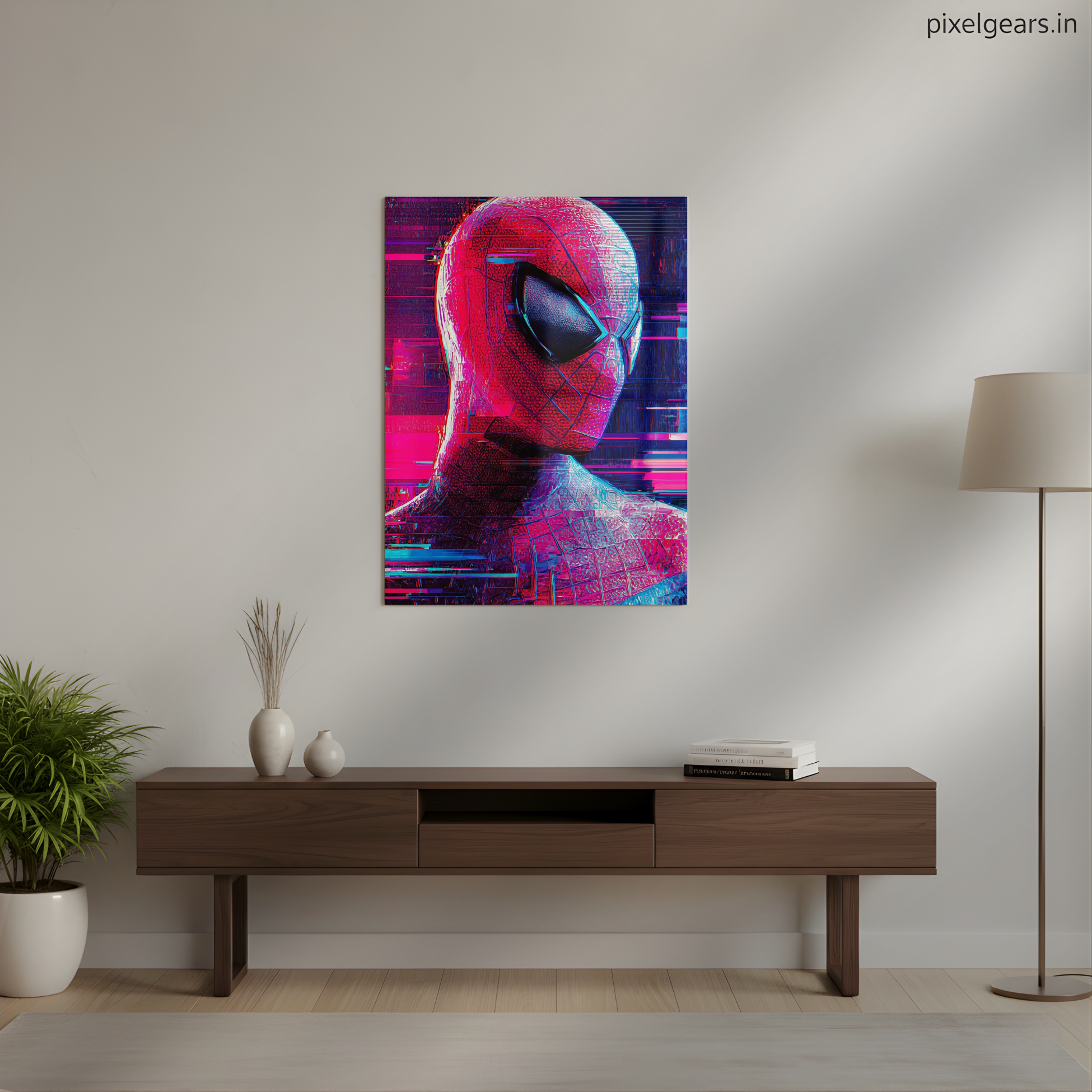 Glitched Red Spiderman Metal Poster | Aesthetic Pop Art Wall Decor & Painting