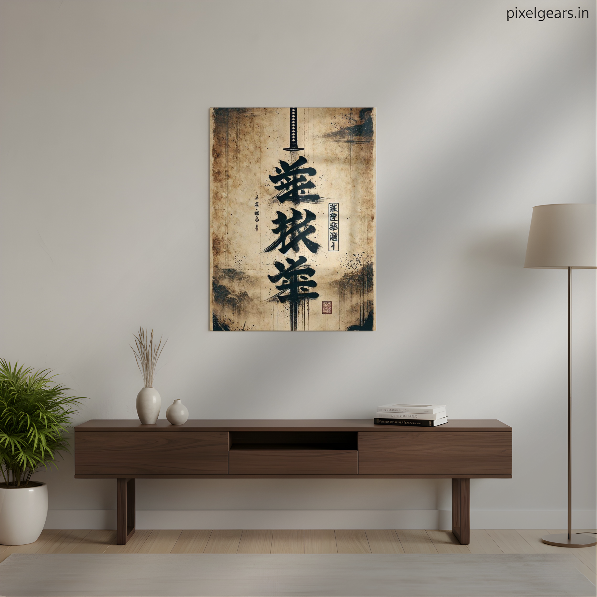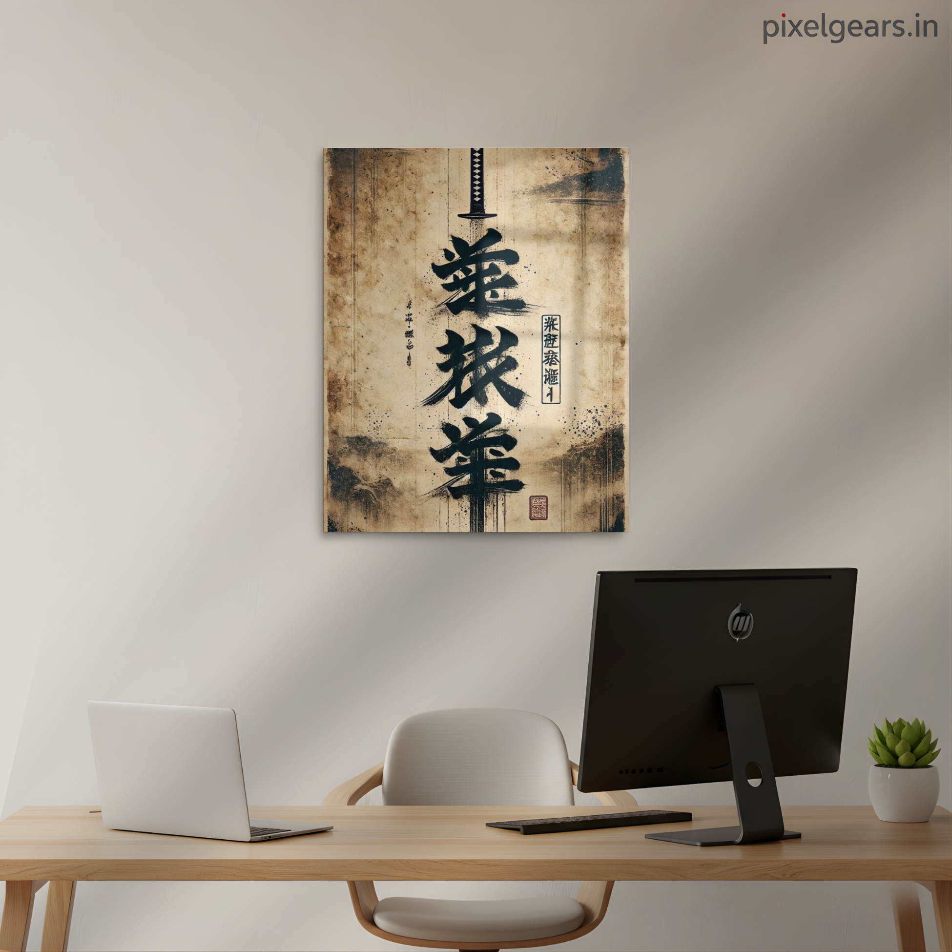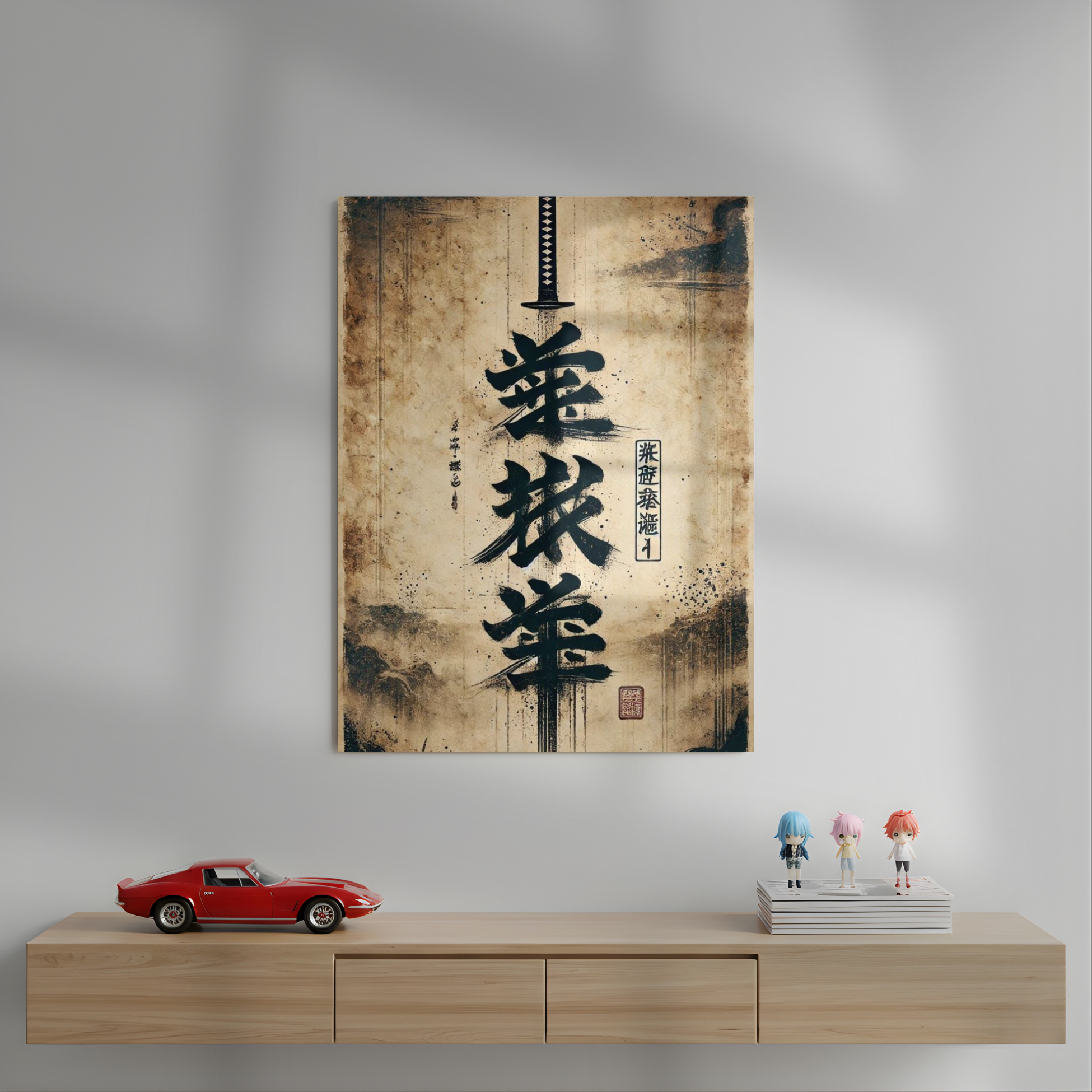 Katana Calligraphy Art Metal Poster | Aesthetic Pop Art Wall Decor & Painting