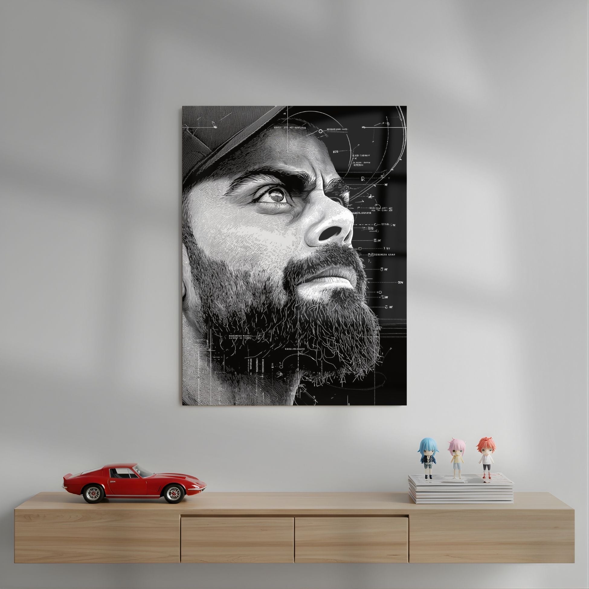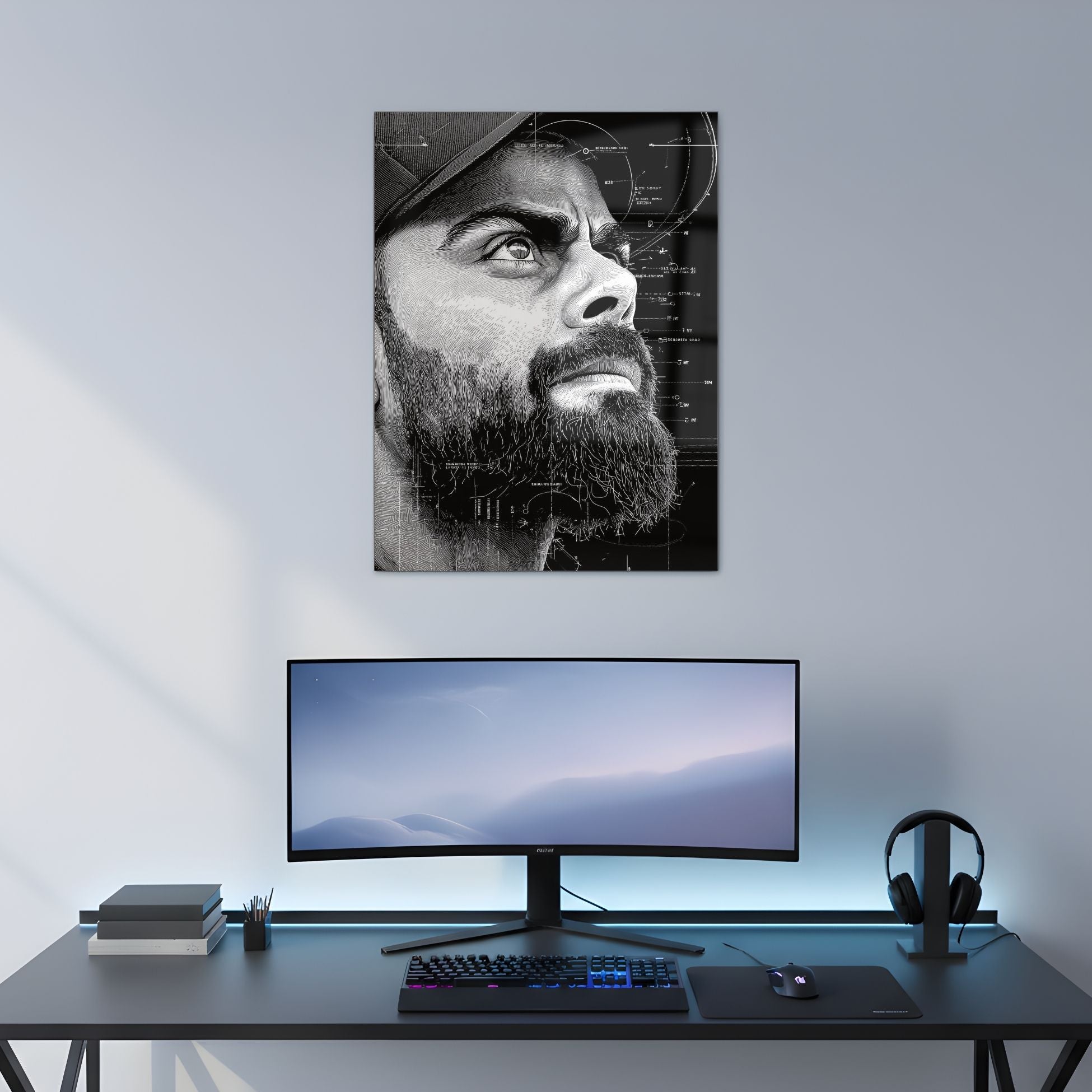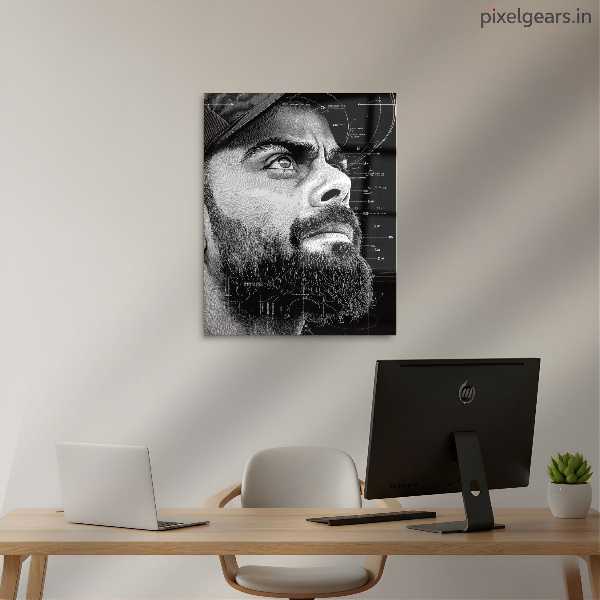 King Kohli Closeup Metal Poster | Aesthetic Pop Art Wall Decor & Painting