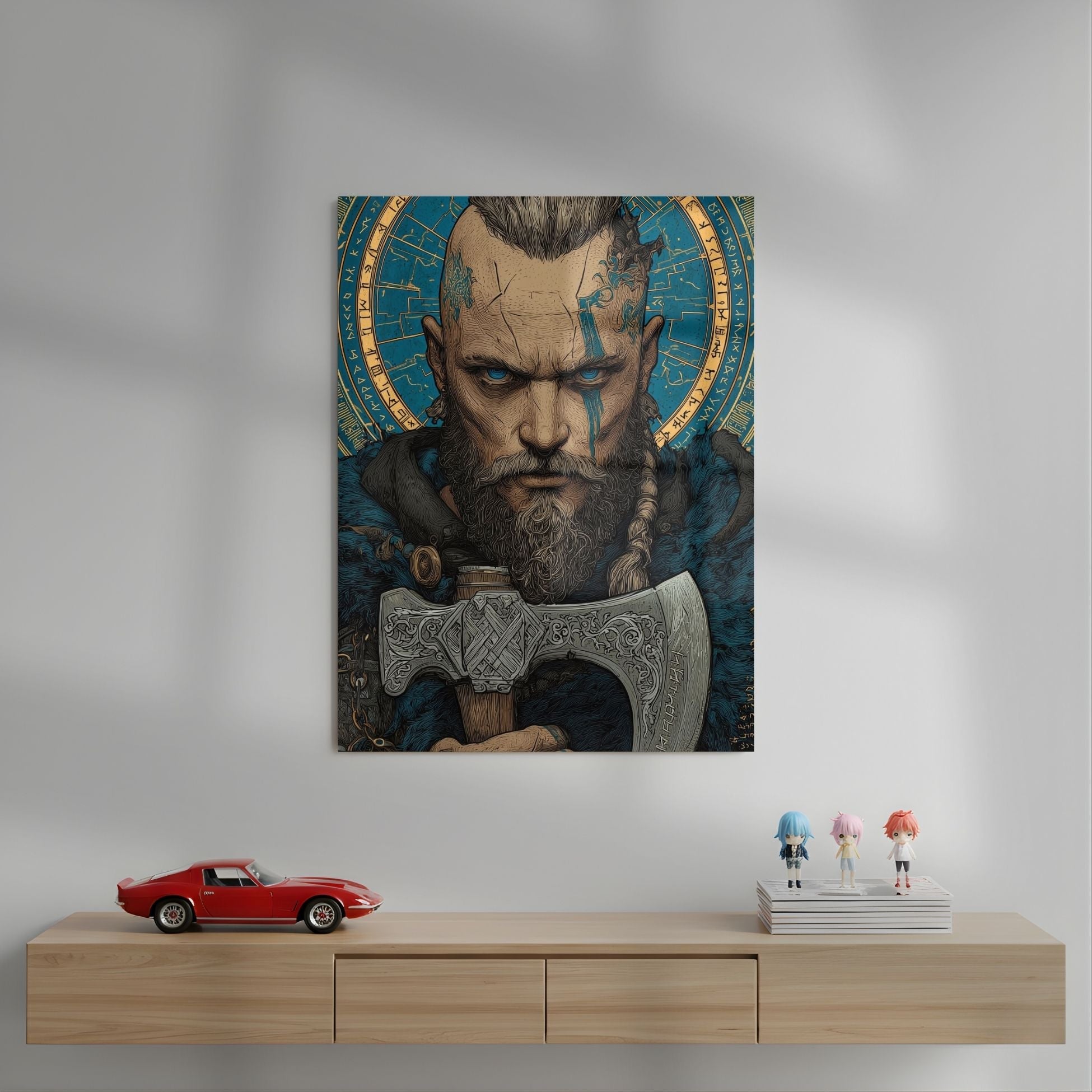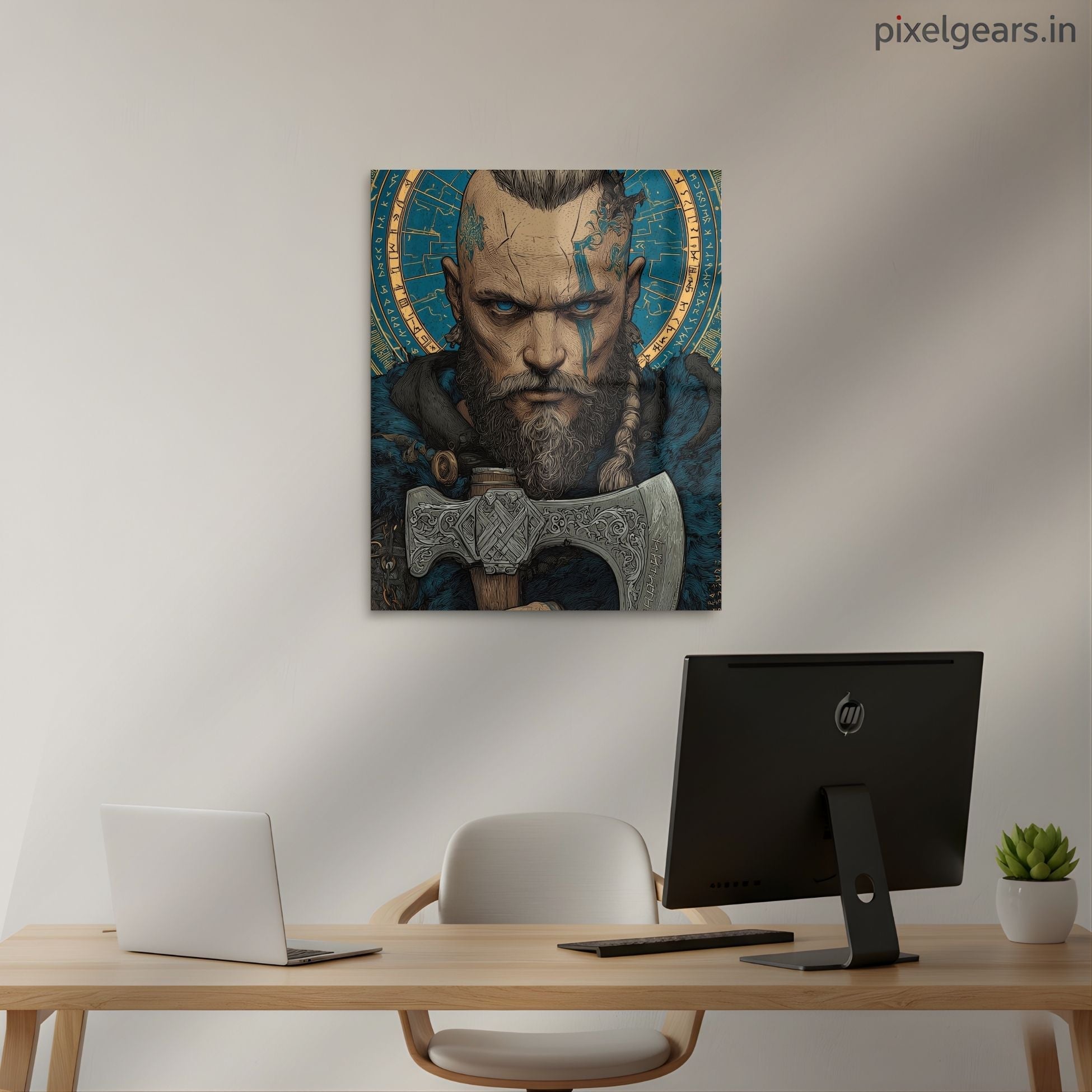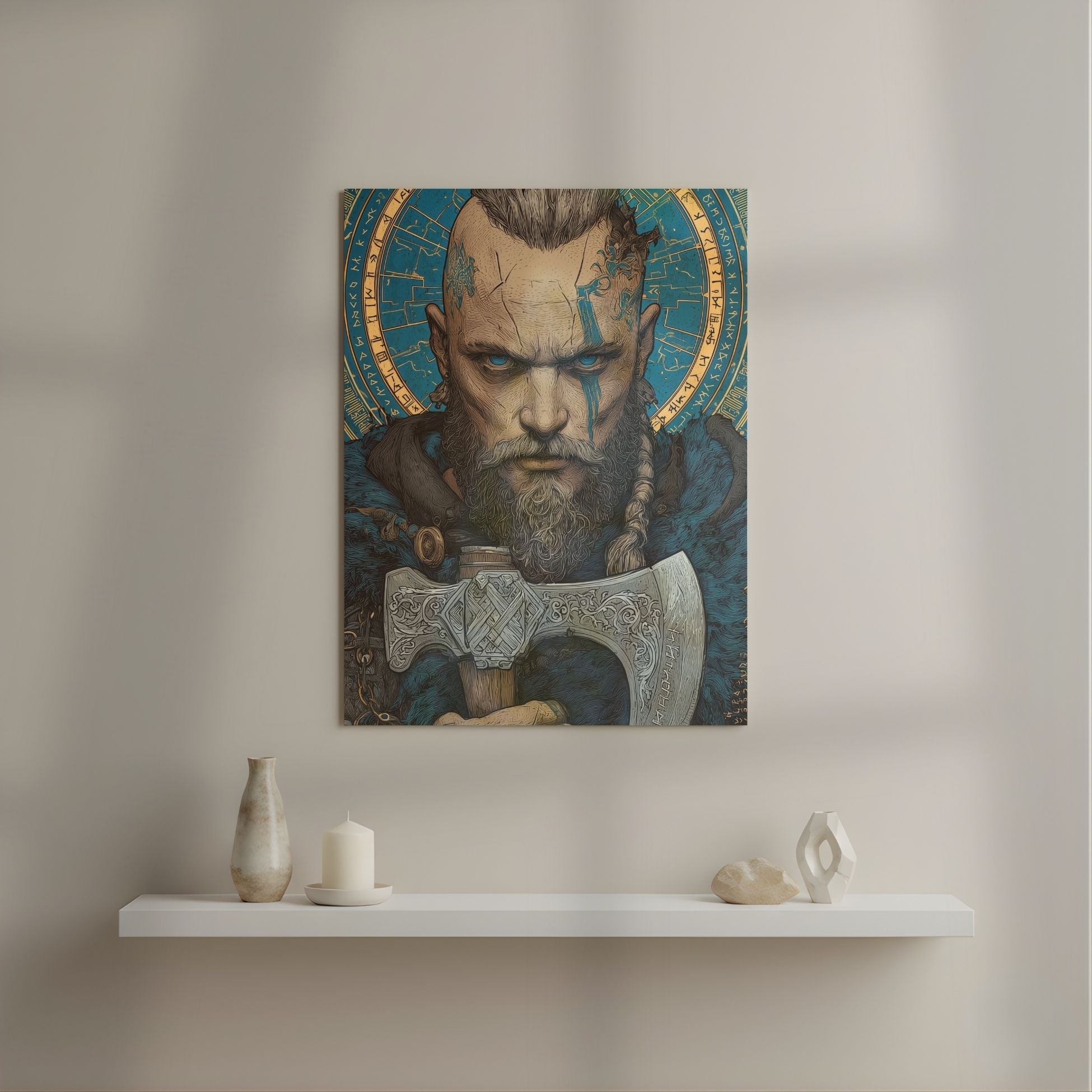 Ragnar Lothbrok Axe Line Art Metal Poster | Aesthetic Pop Art Wall Decor & Painting